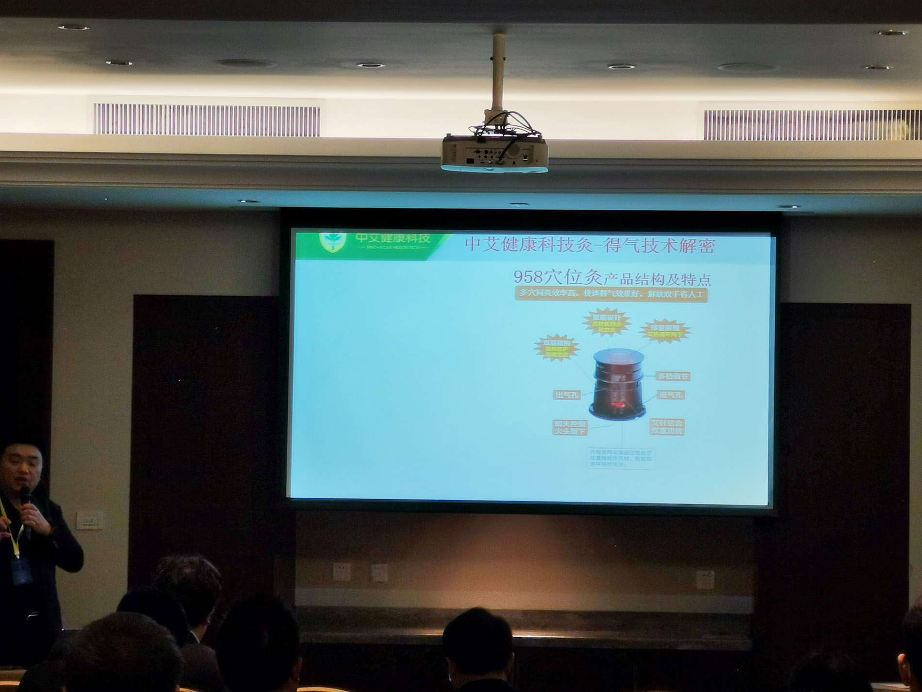 杨龙举先生为大家讲解凯发k8国际健康科技灸灸法的创新与应用